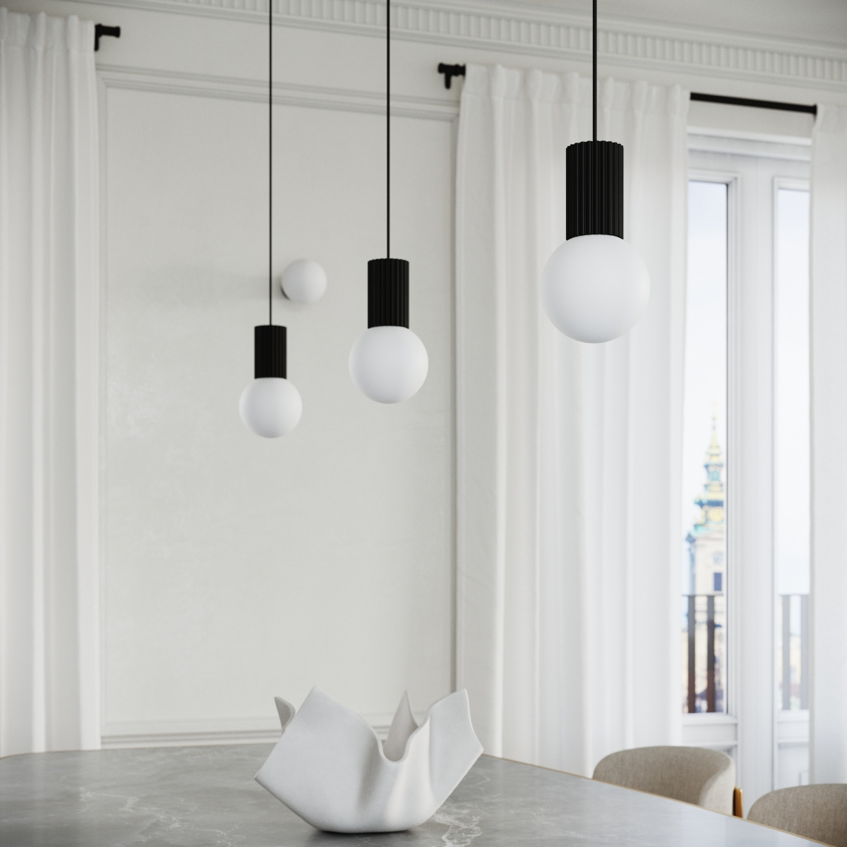 Tack vare den sfäriska skuggan av mjölkglas är ljuset i HALO mjukt, enhetligt och stämningsfullt. Det är det perfekta valet för platser där atmosfären spelar roll - från sovrum och vardagsrum till kaféer, restauranger och butiker. Lampan bländar inte, dominerar inte utan framhäver utrymmet försiktigt.
