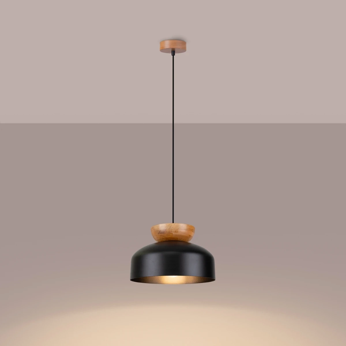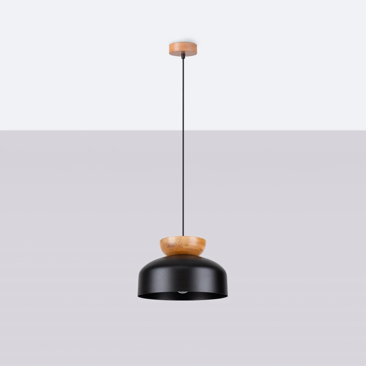 Elegans kombinerat med naturlighet - MARION hänglampa är en komposition av en modern form med accenter av naturligt trä. Finns i en version med vit och svart lampskärm, den kan anpassas till olika interiörer, från skandinaviska till mer klassiska.