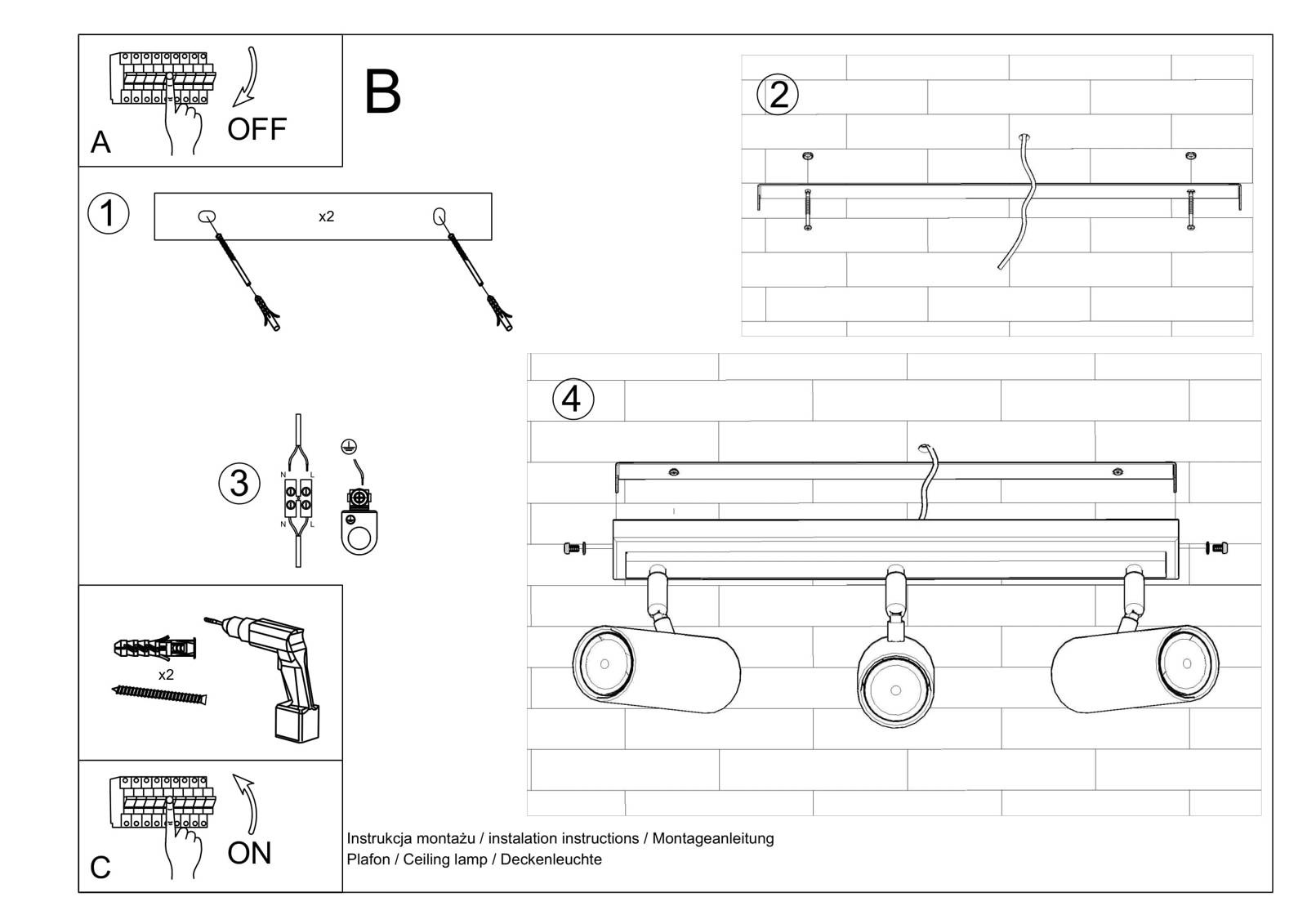 Plafond DIREZIONE 3 vit + 3x LED-lampa GU-10 4000K kall 7W 630lm