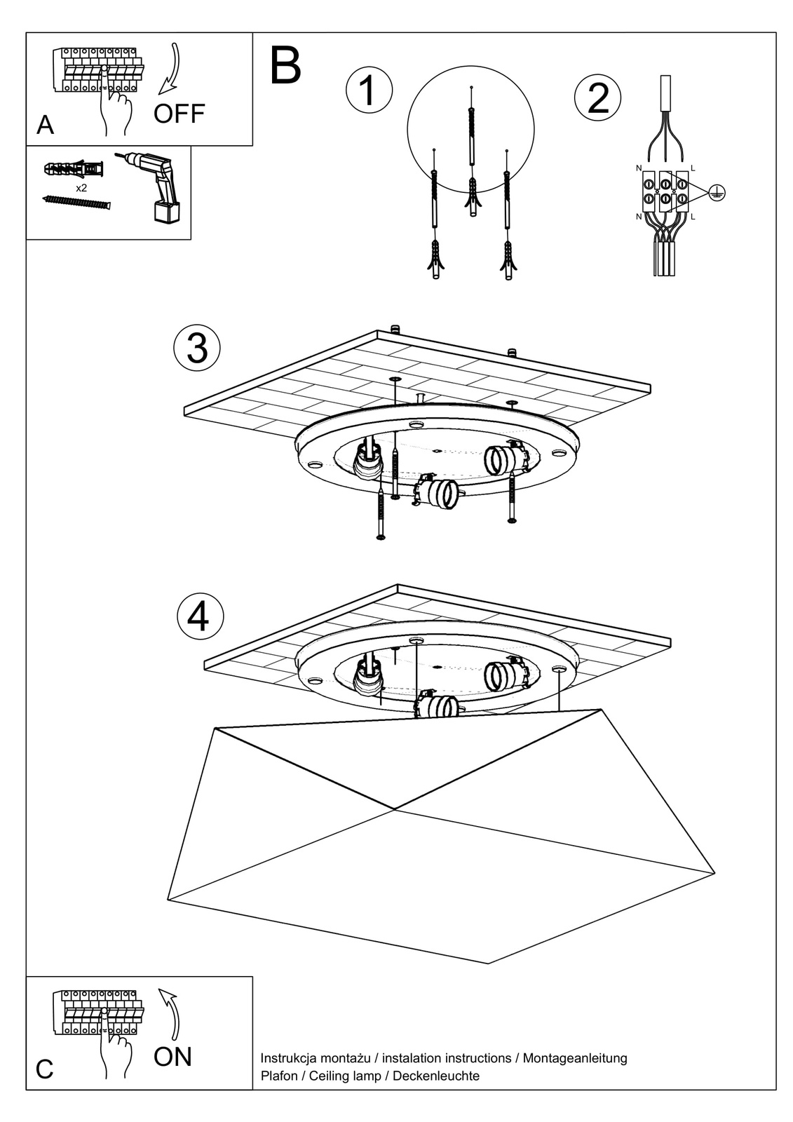 Plafond HEXA 45 BLACK + 3x LED-lampa E27 3000K varm 7,5W 620lm