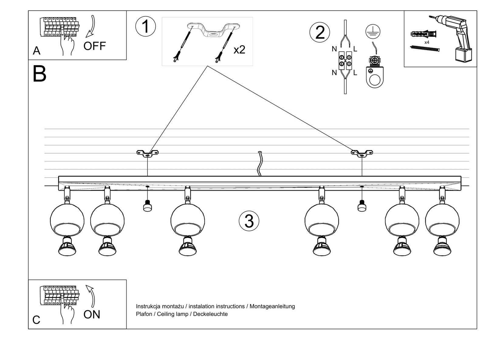 Plafond OCULARE 6L vit +6x LED-lampa GU-10 4000K kall 7W 630lm