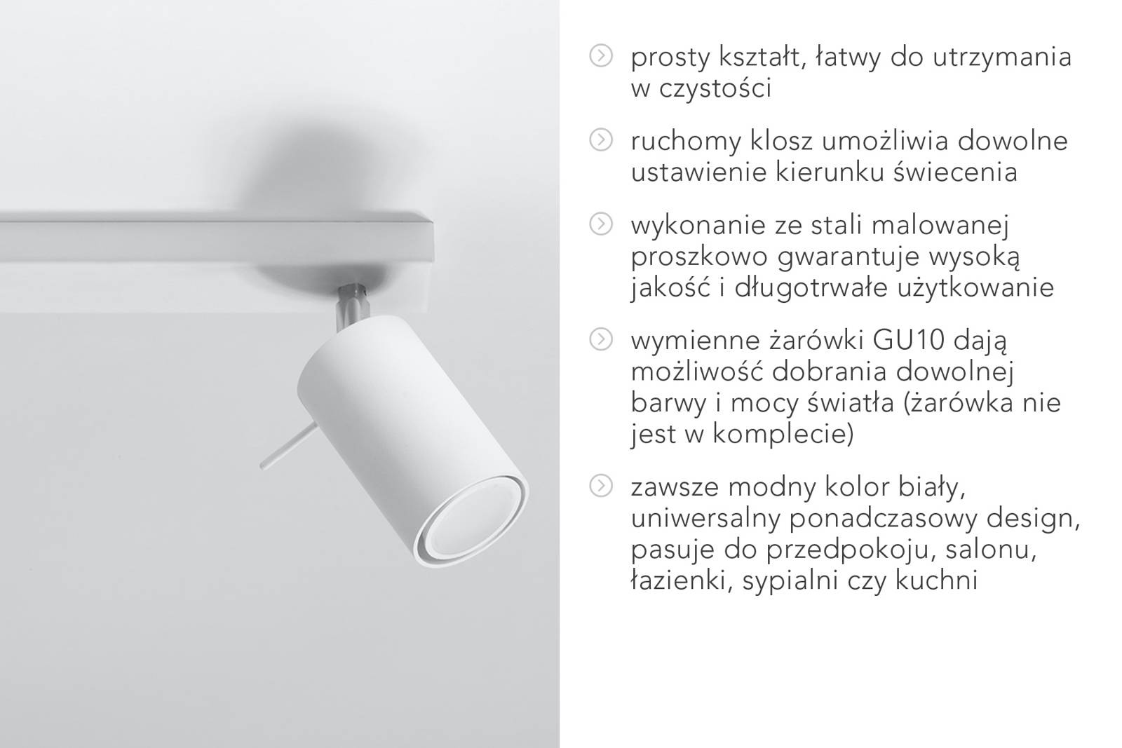 Tack vare de utbytbara GU10*-glödlamporna kan du fritt välja varm eller kall färg och wattal för att anpassa lampan till rummet. *glödlampa ingår inte
