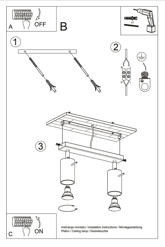 Plafond RING 2 vit + 2x LED-lampa GU-10 3000K varm 7W 620lm