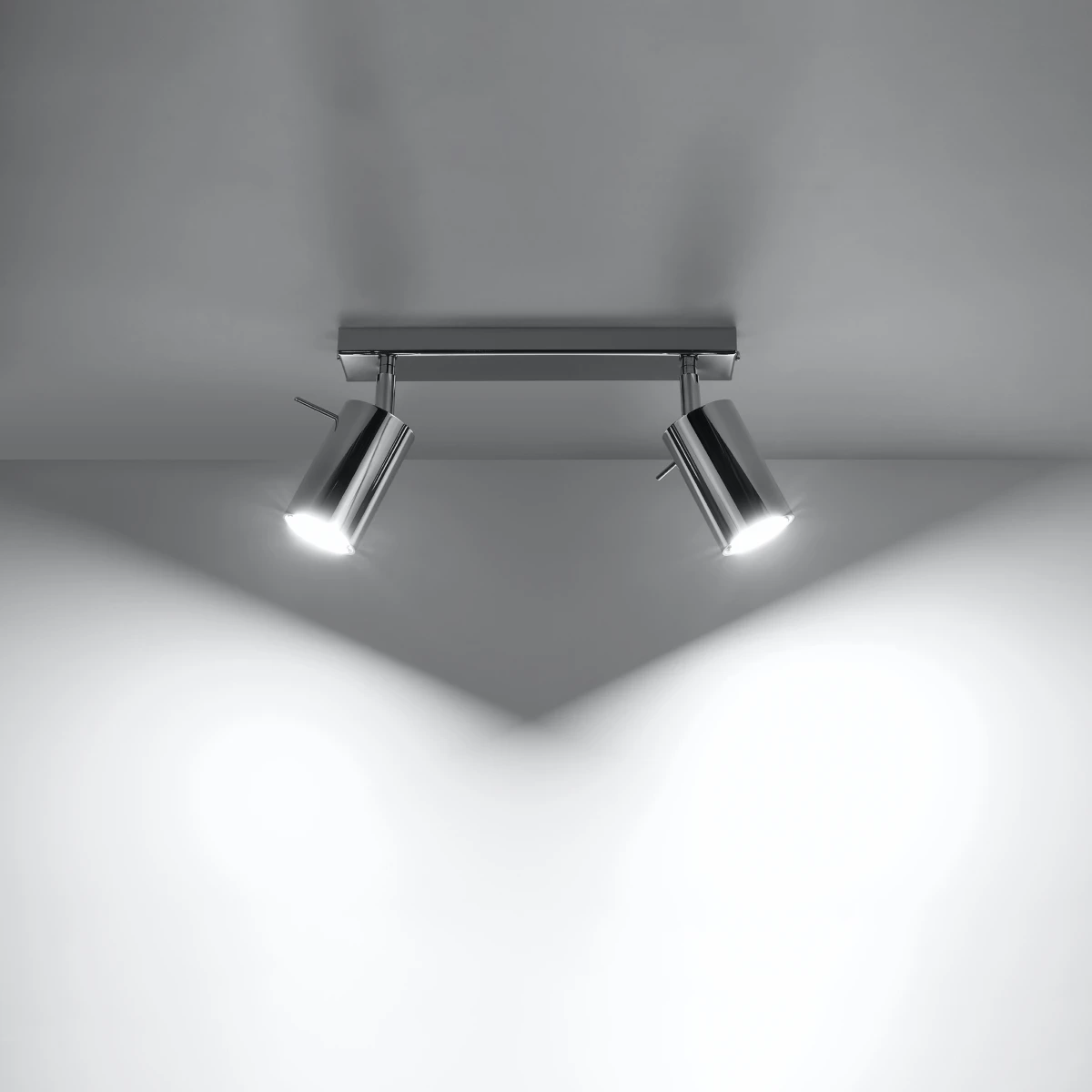 Taklampan för 2 lampor finns i 4 klassiska färgversioner: vit, svart, grå och krom. Universella färger passar perfekt in i interiörer i vilken stil som helst: från ett rått loft till en varm rustik atmosfär.