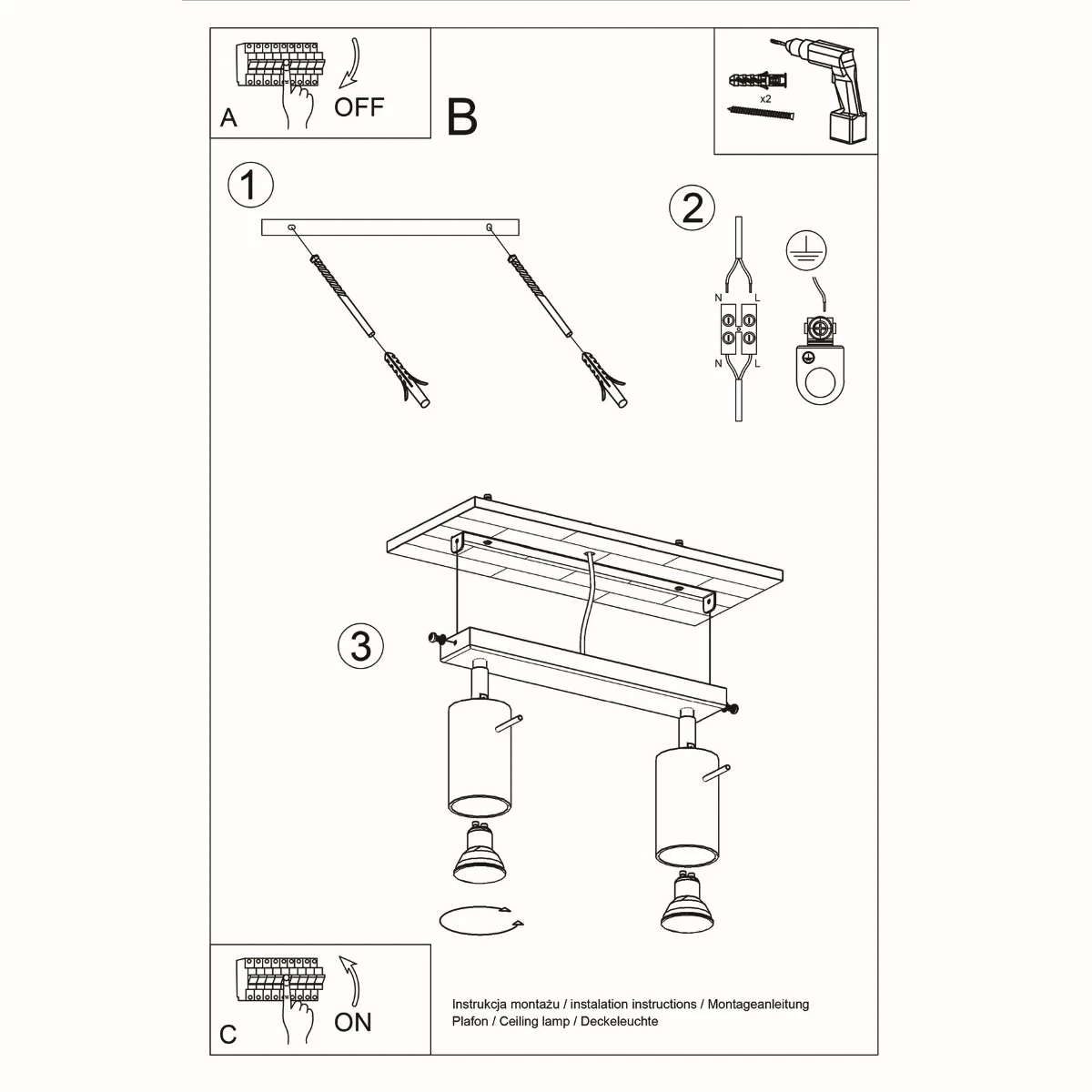 Glöm bort krånglig installation och svag vapen. Taklampan med 2 lampor kan installeras snabbt och enkelt, så du behöver bara ett ögonblick för att börja njuta av dess glöd.