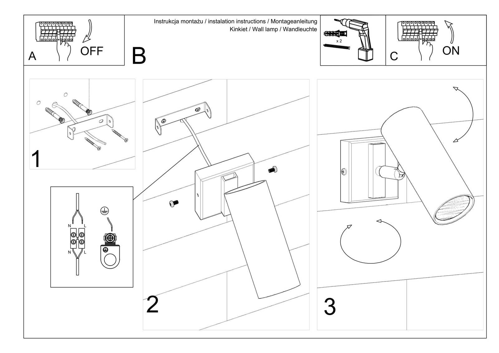 Vägglampa DIREZIONE vit + 1x LED-lampa GU-10 3000K varm 7W 620lm