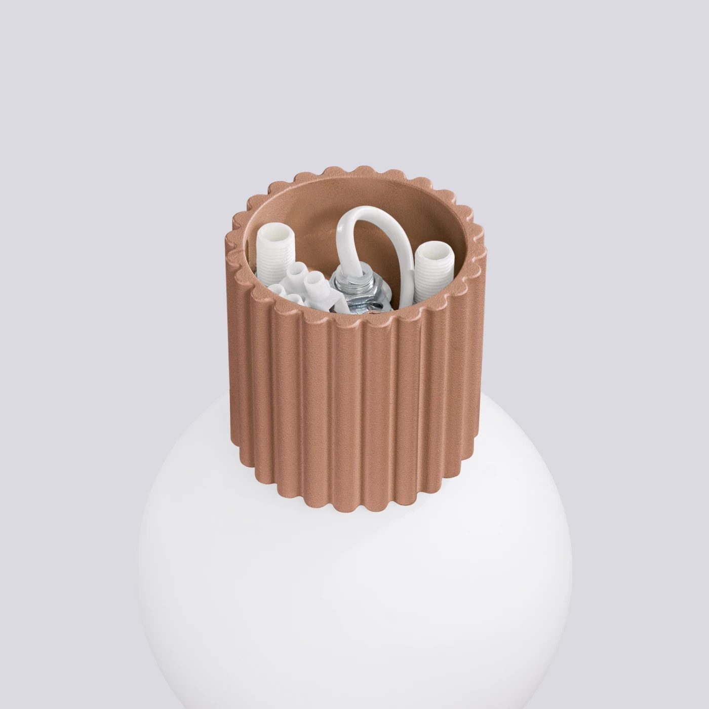 HALO bevisar att en minimalistisk form inte behöver vara tråkig. De karakteristiska spåren på kroppen introducerar en subtil, dekorativ detalj som drar ögat in. Den matta armaturen och den mjölkiga sfären bildar en harmonisk duo, lämplig för moderna, skandinaviska såväl som mer konstnärliga eller retroarrangemang.