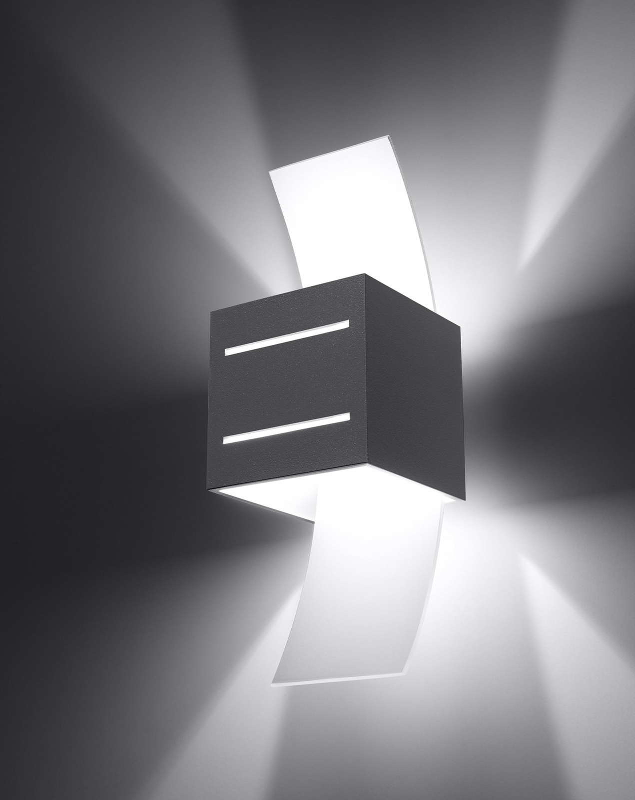 Vägglampan LORETO kommer inte bara att skingra mörkret, utan också skapa en ljusshow på din vägg. De linjära perforeringarna i lampans aluminiumskärm och glaspanel släpper igenom ljusstrålarna och skapar en futuristisk effekt. I kombination med den geometriska formen gör detta LORETO till ett perfekt komplement till moderna eller industriella interiörer.