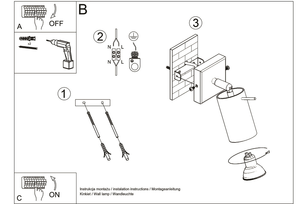 Vägglampa RING svart + 1x LED-glödlampa GU-10 4000K Cold 7W 630lm